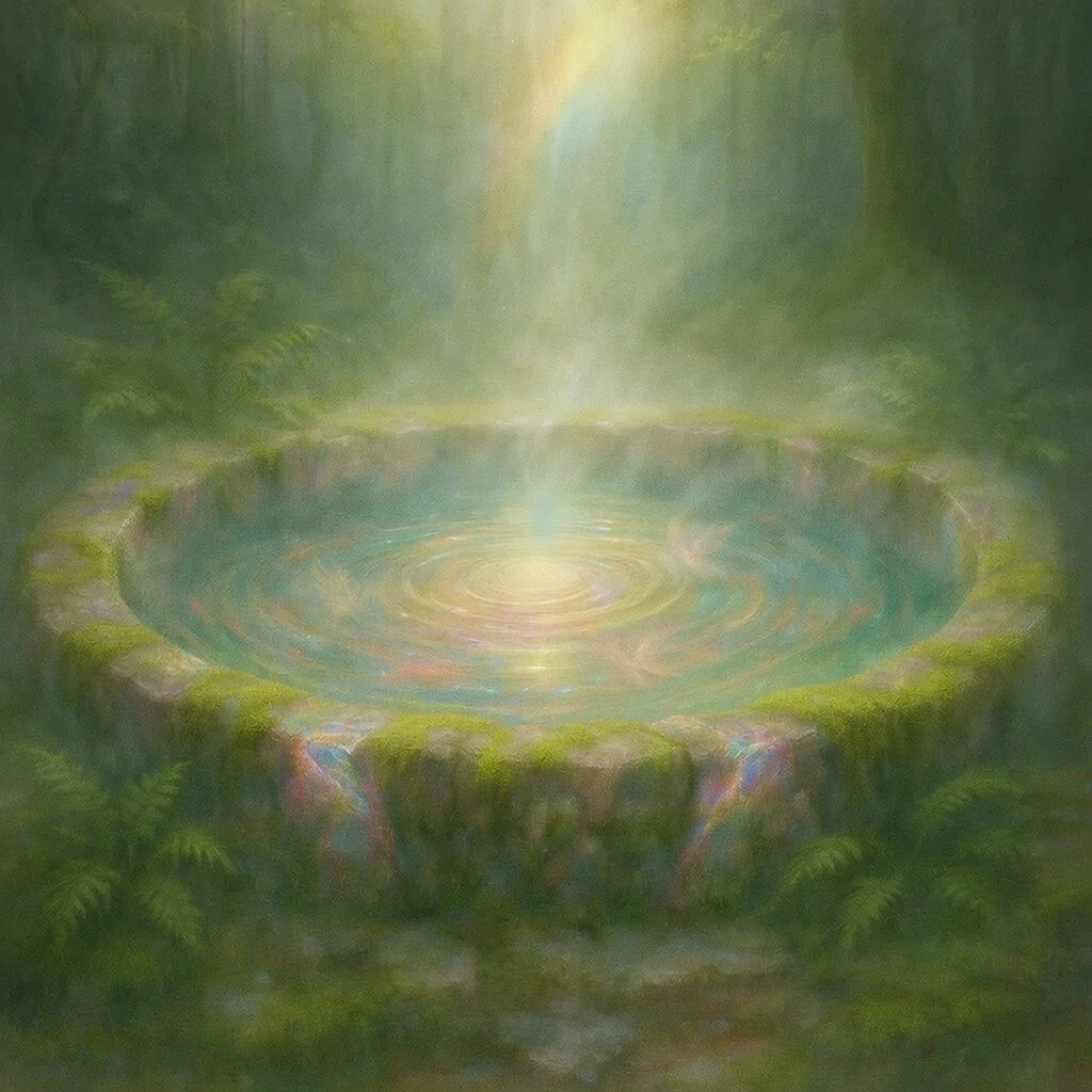 The Dawnspring invites a space of return within: a healing fountain, a quiet pool, a returning place, a sanctuary, a clearing — a place to stop bracing, allow circulation, a witness to replace vigilance. It is a threshold where experience completes and settles, a non-striving presence that restores ease.